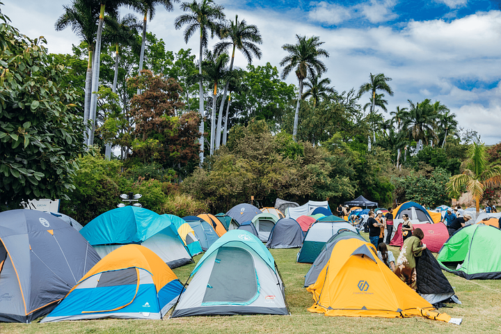 Zona segura dentro del parque acuático para acampar bajo las estrellas.